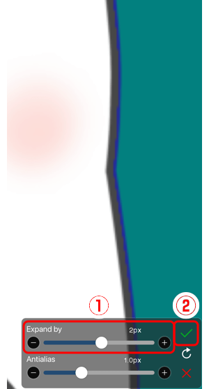 Adjust the ①Expand by slider and tap on the ②✓ to expand the cut-out.